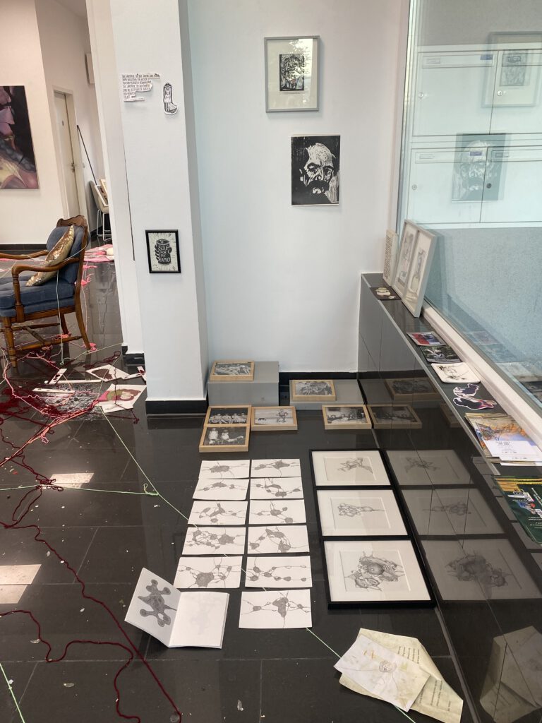 Befreundete Künstler*innen waren eingeladen, ihre Bilder mitzubringen und in die Ausstellung zu integrieren, die sich fortwährend wandelte.